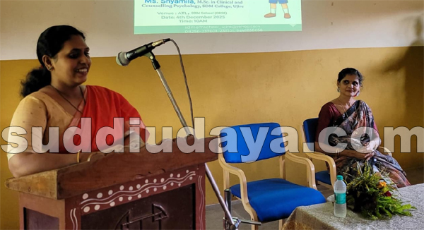 ಸಂಪನ್ಮೂಲ ವ್ಯಕ್ತಿಯಾಗಿ ಎಸ್.ಡಿ.ಎಮ್ ಪದವಿ ಕಾಲೇಜಿನ ಉಪನ್ಯಾಸಕಿ ಶ್ರೀಮತಿ ಶ್ಯಾಮಿಲ ಇವರು ಪ್ರೌಢಾವಸ್ಥೆಯಲ್ಲಿ ತಿಳಿದಿರಬೇಕಾದ ಮಾನಸಿಕ, ಭಾವನಾತ್ಮಕ ಹಾಗೂ ದೈಹಿಕ ವಿಷಯದ ಕುರಿತಾಗಿ ಮಾಹಿತಿ ಹಂಚಿಕೊಂಡರು.