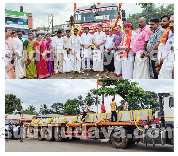 ಉಜಿರೆ: ಇತಿಹಾಸ ಪ್ರಸಿದ್ಧ ಶ್ರೀ ಸದಾಶಿವೇಶ್ವರ ದೇವಸ್ಥಾನ ಸಂಗಮ ಕ್ಷೇತ್ರಕ್ಕೆ ಮುಂಚಾನ ಶ್ರೀ ಮಹಾದೇವಿಕೃಪಾ ಮನೆಯ ಶ್ರೀಮತಿ ಸುಕನ್ಯಾ ಮತ್ತು ಜಯರಾಮ ರಾವ್ ಮತ್ತು ಮಕ್ಕಳು ಸಮರ್ಪಿಸಲಿರುವ ನೂತನ ಶಿಲಾಮಯ ಧ್ವಜಸ್ಥಂಭವು ಕಾರ್ಕಳದಿಂದ ಹೊರಟು ಬೆಳ್ತಂಗಡಿ ಮಾರ್ಗವಾಗಿ ಉಜಿರೆಗೆ ತಲುಪಿದ್ದು ಇದರ ಶೋಭಾಯಾತ್ರೆಗೆ ಡಿ.4ರಂದು ಮಧ್ಯಾಹ್ನ 3.30 ಸಂದರ್ಭ ಉಜಿರೆಯಲ್ಲಿ ವಿವಿಧ ಗಣ್ಯರು ಸ್ವಾಗತಿಸಿ, ಚಾಲನೆ ನೀಡಿದರು.