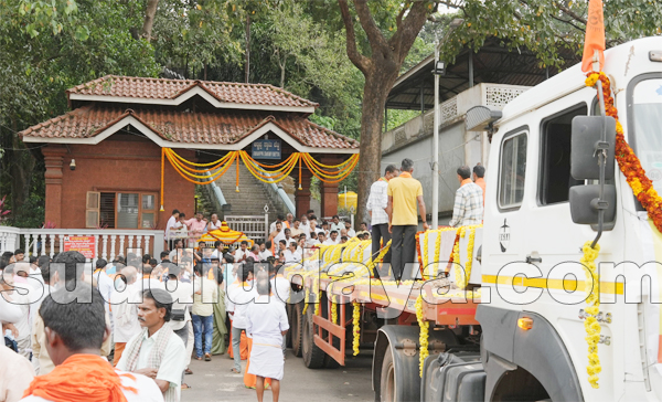 ಧರ್ಮಸ್ಥಳದಲ್ಲಿ ನೂತನ ಶಿಲಾಮಯ ಧ್ವಜಸ್ತಂಭಕ್ಕೆ ಭವ್ಯ ಸ್ವಾಗತ