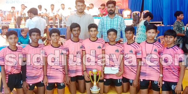 ಹೊಸಂಗಡಿ: ಪುಂಜಾಲಕಟ್ಟೆ ಸ್ವಸ್ತಿಕ್ ಫ್ರೆಂಡ್ಸ್ ಕ್ಲಬ್ ರಿ. ಇದರ ವತಿಯಿಂದ ಡಿ.7ರಂದು ನಡೆದ ಕಬ್ಬಡ್ಡಿ ಪಂದ್ಯಾಟದಲ್ಲಿ ಪ್ರೌಢಶಾಲಾ ವಿಭಾಗದ ಕಬಡ್ಡಿ ಪಂದ್ಯಾಟದಲ್ಲಿ ಹೊಸಂಗಡಿ ಇಂದಿರಾ ಗಾಂಧಿ ವಸತಿ ಶಾಲೆಯ ಬಾಲಕರ ತಂಡವು ತೃತೀಯ ಸ್ಥಾನವನ್ನು ಪಡೆದುಕೊಂಡಿದೆ.