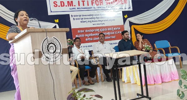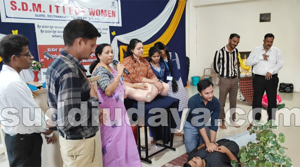 ಉಜಿರೆಯ ಎಸ್.ಡಿ.ಎಂ. ಮಹಿಳಾ ಐಟಿಐ ಕಾಲೇಜಿನಲ್ಲಿ ಎಸ್.ಡಿ.ಎಂ. ಬಿ.ಎಡ್. ಕಾಲೇಜು ಹಾಗೂ ಬೆಳ್ತಂಗಡಿ ತಾಲೂಕು ಆರೋಗ್ಯ ಮತ್ತು ಕುಟುಂಬ ಕಲ್ಯಾಣ ಇಲಾಖೆ ಸಹಯೋಗದಲ್ಲಿ ಪ್ರಥಮ ಚಿಕಿತ್ಸೆ ಹಾಗೂ ಹೃದಯ-ಶ್ವಾಸ ಪುನಶ್ಚೇತನ (ಸಿಪಿಆರ್) ಕುರಿತ ಮಾಹಿತಿ, ಪ್ರಾತ್ಯಕ್ಷಿಕೆ ಕಾರ್ಯಕ್ರಮ ಡಿ.17 ರಂದು ನಡೆಯಿತು.