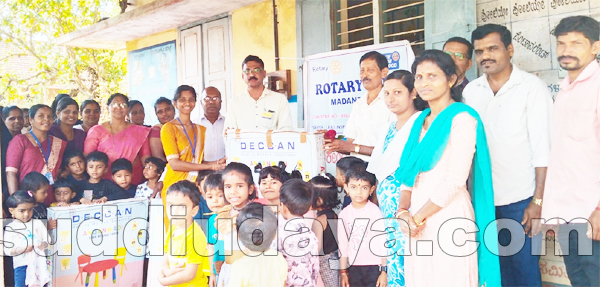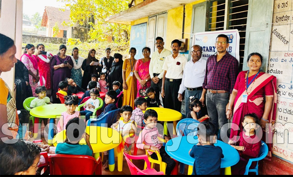 ಮಚ್ಚಿನ ಅಂಗನವಾಡಿ ಕೇಂದ್ರಕ್ಕೆ ಹಳೆ ವಿದ್ಯಾರ್ಥಿ ಸಂಘದ ವತಿಯಿಂದ ರೋಟರಿ ಕ್ಲಬ್ ಅಧ್ಯಕ್ಷ ರೋ.ಮ್ಯಾಕ್ಸಿo ಅಲ್ಬು ಕರ್ಕ್ ಅವರಿಗೆ ಮನವಿಯನ್ನು ನೀಡಿದಾಗ ತಕ್ಷಣ ಸ್ಪಂದಿಸಿ ಐದು ಬರೆಯುವ ಟೇಬಲ್ ನೀಡಿದರು.