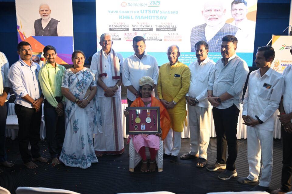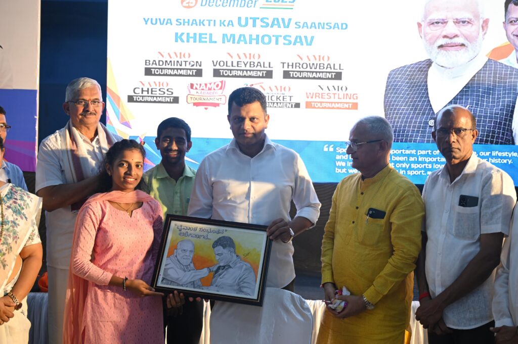 ಬೆಳ್ತಂಗಡಿ: ಹೂವಿನಲ್ಲಿ ಬೃಹದಾಕಾರದ ರಂಗೋಲಿಯನ್ನು ತಯಾರಿಸಿ ದಾಖಲೆ ನಿರ್ಮಿಸಿ ಇಂಡಿಯಾ ಬುಕ್ ಆಫ್ ರೆಕಾರ್ಡ್ ಹಾಗೂ ಏಷ್ಯಾ ಬುಕ್ ಆಫ್ ರೆಕಾರ್ಡ್ ಸಾಧನೆಗೈದ ಶ್ರದ್ಧಾ ಶೆಟ್ಟಿ ಎಣಿoಜೆ ರವರನ್ನು ಸಂಸದ್ ಕ್ರೀಡಾ ಮಹೋತ್ಸವದ ಕಾರ್ಯಕ್ರಮದ ವೇದಿಕೆಯಲ್ಲಿ ದಕ್ಷಿಣ ಕನ್ನಡ ಜಿಲ್ಲಾ ಸಂಸದರಾದ ಕ್ಯಾಪ್ಟನ್ ಬ್ರಿಜೇಶ್ ಚೌಟ ಸೇರಿದಂತೆ ಜಿಲ್ಲೆಯ ಶಾಸಕರ, ಗಣ್ಯರ ಉಪಸ್ಥಿತಿಯಲ್ಲಿ ಸನ್ಮಾನಿಸಿದರು.
