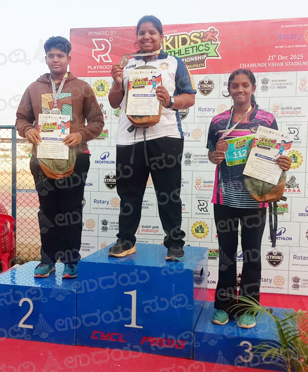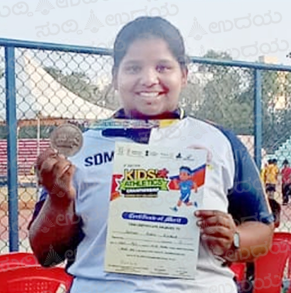 ಉಜಿರೆ: ಇತ್ತೀಚೆಗೆ ಮೈಸೂರಿನ ಚಾಮುಂಡಿ ವಿಹಾರ ಸ್ಟೇಡಿಯಂನಲ್ಲಿ ಆಯೋಜಿಸಲಾದ ರಾಜ್ಯ ಮಟ್ಟದ ಕಿಡ್ಸ್ ಅಥ್ಲೆಟಿಕ್ಸ್ ಚಾಂಪಿಯನ್ ಶಿಪ್ ನಲ್ಲಿ ಉಜಿರೆಯ ಎಸ್.ಡಿ.ಎಂ ಆಂಗ್ಲ ಮಾಧ್ಯಮ ರಾಜ್ಯ ಪಠ್ಯಕ್ರಮ ಶಾಲೆಯ ವಿಧ್ಯಾರ್ಥಿನಿ ಅನೀಶ ಆರೋಲ್ ಡಿಸೋಜಾ ಗುಂಡೆಸೆತ ಸ್ಪರ್ಧೆಯಲ್ಲಿ ಭಾಗವಹಿಸಿ ಪ್ರಥಮ ಸ್ಥಾನ ಪಡೆದಿದ್ದಾರೆ.