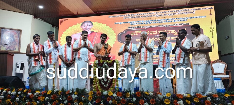ಉಜಿರೆ: ಪರ್ಯಾಯ ಶ್ರೀ ಶೀರೂರು ಶ್ರೀ ವೇದವರ್ಧನ ತೀರ್ಥ ಶ್ರೀಪಾದರ ಪೌರ ಸನ್ಮಾನ ಸಮಿತಿಯಿಂದ ಪೊಡವಿಗೊಡೆಯ ಉಡುಪಿಯ ಅನ್ನಬ್ರಹ್ಮ ಶ್ರೀ ಕೃಷ್ಣ ದೇವರ ಸನ್ನಿಧಿಯಲ್ಲಿ ಸರ್ವಜ್ಞ ಪೀಠಾರೋಹಣವೇರಿ ಶ್ರೀ ಕೃಷ್ಣ ದೇವರ ಪೂಜಾ ಕೈಂಕರ್ಯ ದೀಕ್ಷೆಯನ್ನು ಸ್ವೀಕರಿಸಲಿರುವ ಶ್ರೀ ಶೀರೂರು ಮಠದ ಶ್ರೀ ವೇದವರ್ಧನ ತೀರ್ಥ ಶ್ರೀಪಾದರಿಗೆ ಬೆಳ್ತಂಗಡಿ ತಾಲೂಕಿನ ಸಮಸ್ತ ನಾಗರಿಕರಿಂದ ಪೌರಸಮ್ಮಾನ ಕಾರ್ಯಕ್ರಮವು ಉಜಿರೆಯ ಶ್ರೀ ಕೃಷ್ಣಾನುಗ್ರಹ ಸಭಾಭವನದಲ್ಲಿ ಜ.2ರಂದು ನಡೆಯಿತು.