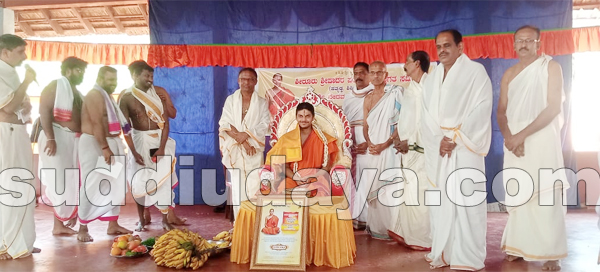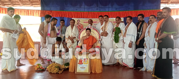 ಅರಸಿನಮಕ್ಕಿ: ಪರ್ಯಾಯ ಸಂಚಾರದಲ್ಲಿರುವ ಶೀರೂರು ಮಠದ ಶ್ರೀ ವೇದವರ್ಧನ ಸ್ವಾಮೀಜಿ ಜ. 2ರಂದು ಬೂಡುಮುಗೇರು ದೇವಸ್ಥಾನಕ್ಕೆ ಆಗಮಿಸಿದಾಗ ಶೀರೂರು ಪರ್ಯಾಯ ಪೂಜ್ಯ ಶ್ರೀಗಳ ಸ್ವಾಗತ ಸಮಿತಿ ಹತ್ಯಡ್ಕ ಮತ್ತು ಭಕ್ತಾದಿಗಳಿಂದ ಸ್ವಾಮೀಜಿಯವರನ್ನು ಪೂರ್ಣ ಕುಂಭ ಸ್ವಾಗತ ಮಾಡಲಾಯಿತು.
