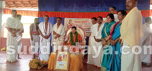 ಅರಸಿನಮಕ್ಕಿ ಶ್ರೀ ಬೂಡುಮುಗೇರು ದುರ್ಗಾಪರಮೇಶ್ವರಿ ದೇವಸ್ಥಾನಕ್ಕೆ ಶೀರೂರು ವೇದವರ್ಧನ ಸ್ವಾಮೀಜಿಯವರು ಭೇಟಿ, ನಾಗರಿಕರಿಂದ ಗೌರವಾರ್ಪಣೆ