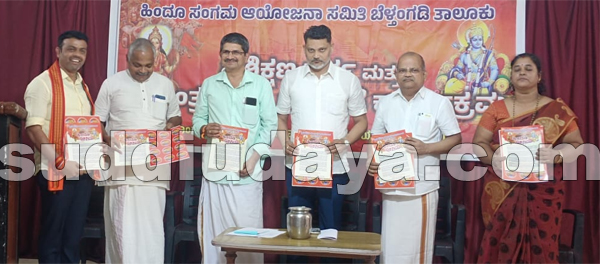 ಬೆಳ್ತಂಗಡಿ: ಹಿಂದೂ ಸಂಗಮ ಆಯೋಜನಾ ಸಮಿತಿ ಬೆಳ್ತಂಗಡಿ ತಾಲೂಕು ಇದರ ಕಡೆಯಿಂದ ಆಯೋಜನಾ ಸಮಿತಿಯ ಪದಾಧಿಕಾರಿಗಳಿಗೆ ಮತ್ತು ಮಂಡಲ ನಿರ್ವಹಣಾ ತಂಡದ ಪ್ರಮುಖರಗಳಿಗೆ ಪ್ರಶಿಕ್ಷಣ ವರ್ಗ ಮತ್ತು ಆಮಂತ್ರಣ ಪತ್ರ ಬಿಡುಗಡೆ ಕಾರ್ಯಕ್ರಮ ಜ. 5ರಂದು ಗುರುವಾಯನಕೆರೆ ಬಂಟರ ಭವನದಲ್ಲಿ ಜರುಗಿತು.