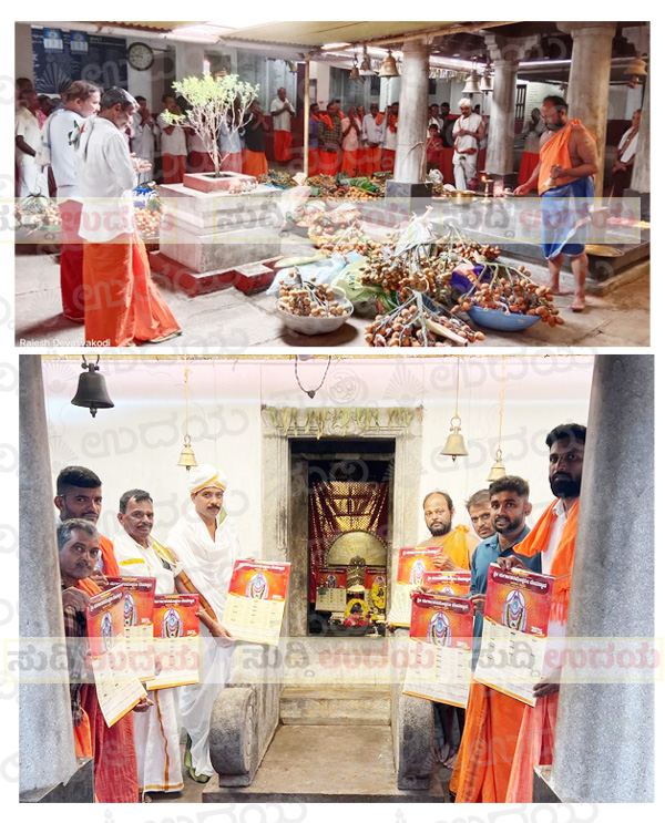 ಇಂದು (ಜ.14 ) ಬೆಳಿಗ್ಗೆ ತೋರಣ ಮುಹೂರ್ತ, ಹಾಗೂ ಗ್ರಾಮಸ್ಥರಿಂದ ಹಸಿರುವಾಣಿ ಹೊರೆಕಾಣಿಕೆ ನಡೆಯಿತು. ಈ ವೇಳೆ ದೇವಸ್ಥಾನದ 2026 ರ ನೂತನ ಕ್ಯಾಲೆಂಡರ್ ನ್ನು ಅನುವಂಶಿಕ ಆಡಳಿತ ಮೊಕ್ತೇಸರರಾದ ನಿತೇಶ್ ಬಲ್ಲಾಳ್ ಉಳಿಯಬೀಡು , ಅರ್ಚಕ ಯು.ವಿ. ಗುರುಪ್ರಸಾದ್ ನಿಡ್ವಣ್ಣಾಯ ಬಿಡುಗಡೆಗೊಳಿಸಿದರು.