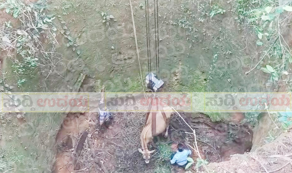 ಬಾವಿಗೆ ಬಿದ್ದ ಹಸುವನ್ನು ಇಂದು ಮುಂಜಾನೆ ಸ್ಕ್ರೈನ್ ಮೂಲಕ ಮೇಲಕ್ಕೆತ್ತುವ ಕೆಲಸ ನಡೆದಿದ್ದು, ಆಳಕ್ಕೆ ಬಿದ್ದ ರಭಸಕ್ಕೆ ಹಸುವಿಗೆ ಗಂಭೀರ ಗಾಯಗೊಂಡಿದ್ದು, ಪಶು ವೈದ್ಯಾಧಿಕಾರಿ ಸ್ಥಳಕ್ಕೆ ಆಗಮಿಸಿ ಚಿಕಿತ್ಸೆ ನೀಡಿರುತ್ತಾರೆ.