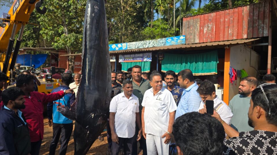 ಬೆಳ್ತಂಗಡಿ: ಉಜಿರೆ ಚಾರ್ಮಾಡಿ ರಸ್ತೆಯಲ್ಲಿ ನಾಗೇಶ್ ಕೋಟ್ಯಾನ್ ಮಾಲೀಕತ್ವದ ತಾಜಾ ಮೀನು ಅಂಗಡಿಗೆ ಶನಿವಾರ 550 ಕೆಜಿ ತೂಕದ ಅಪರೂಪದ ಮಡಲ್ ಮೀನು ಬಂದಿದ್ದು ಮೀನು ಮಾಂಸ ಖರೀದಿಸಲು, ನೋಡಲು ಜನ ಮುಗಿಬಿದ್ದರು.