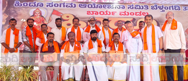 ಬೆಳ್ತಂಗಡಿ: ಬೆಳ್ತಂಗಡಿ ತಾಲೂಕು ಹಿಂದೂ ಸಂಗಮ ಆಯೋಜನಾ ಸಮಿತಿ ವತಿಯಿಂದ ಬಾರ್ಯ ಮಂಡಲದ ಬಾರ್ಯ, ಪುತ್ತಿಲ, ತಣ್ಣೀರುಪಂತ ಹಾಗೂ ತೆಕ್ಕಾರು ಗ್ರಾಮಗಳನ್ನು ಒಳಗೊಂಡ ಹಿಂದೂ ಸಂಗಮ ಜ.25 ರಂದು ಬಾರ್ಯ ಶ್ರೀ ವಿಷ್ಣುಮೂರ್ತಿ ದೇವಸ್ಥಾನ ವಠಾರದಲ್ಲಿ ನಡೆಯಿತು.