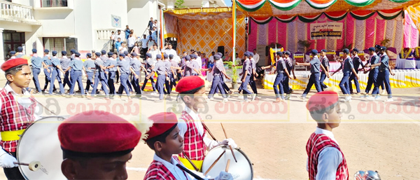ಪೋಲಿಸರು, ಗೃಹ ರಕ್ಷಕ ದಳದ ಸಿಬ್ಬಂದಿಗಳು, ಸ್ಕೌಟ್ಸ್ ಗೈಡ್ಸ್ ವಿದ್ಯಾರ್ಥಿಗಳು ಆಕರ್ಷಕ ಪಥಸಂಚಲನ ನಡೆಸಿದರು.