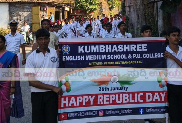 ವೇಣೂರು : ಕುಂಭಶ್ರೀ ಆಂಗ್ಲ ಮಾಧ್ಯಮ ಶಾಲಾ ಕಾಲೇಜು ನಿಟ್ಟಡೆ ಇಲ್ಲಿನ ಗಣರಾಜ್ಯ ದಿನ ಪಥ ಸಂಚಾಲನದ ಮೂಲಕ ಬಹಳ ವಿಜೃಂಭಣೆಯಿಂದ ನಡೆಯಿತು.