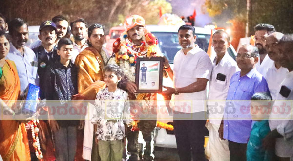 ಮೊಗ್ರು : ರಾಷ್ಟ್ರ ಭಕ್ತರ ವೇದಿಕೆ ಬಂದಾರು ಮತ್ತು ಮೊಗ್ರು ಗ್ರಾಮ ಇದರ ನೇತೃತ್ವದಲ್ಲಿ ವಿವಿಧ ಸಂಘ ಸಂಸ್ಥೆಗಳು, ನಿವೃತ್ತ ಸೇನಾನಿಗಳ ಸಂಘ ಹಾಗೂ ಊರವರ ಸಹಕಾರದಲ್ಲಿ ಭಾರತ ಮಾತೆಯ ಸೇವೆಯಲ್ಲಿ 22 ವರ್ಷಗಳ ಕಾಲ ಸೇವೆ ಸಲ್ಲಿಸಿ ಕರ್ತವ್ಯದಿಂದ ನಿವೃತ್ತಿ ಹೊಂದಿ ಫೆ 01 ರಂದು ಹುಟ್ಟೂರಿಗೆ ಆಗಮಿಸಿದ ಮೊಗ್ರು ಗ್ರಾಮದ ಮುಗೇರಡ್ಕ ಬರೆಮೇಲು ನಿವಾಸಿ ವೀರ ಯೋಧ ಎ.ಸಿ.ಪಿ ಹವಾಲ್ದಾರ್ ದೇವಪ್ರಸಾದ್ ಗೌಡ ರವರನ್ನು ಹಿಂದೂ ಸಂಗಮ ಆಯೋಜಕರು ಸ್ವಾಗತಿಸಿ, ಸನ್ಮಾನಿಸಿ, ಜಿಲ್ಲೆ, ತಾಲೂಕು ನಿವೃತ ಸೇನಾನಿಗಳ ಸಂಘದ ಪದಾಧಿಕಾರಿಗಳು ಗೌರವ ವಂದನೆ ಸಲ್ಲಿಸಿದರು.