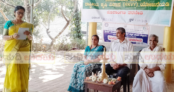 ಪ್ರಸ್ತಾವಿಕವಾಗಿ ಮಾತನಾಡಿದ ಕೃಷಿ ಸಖಿ ಭಾಗೀರಥಿ ರೈತ ತರಬೇತಿಯ ಉದ್ದೇಶಗಳು ಇಲಾಖೆಯ ವತಿಯಿಂದ ನಡೆಯುವ ವಿವಿಧ ತರಬೇತಿಗಳ ಬಗ್ಗೆ ಪ್ರಾತ್ಯಕ್ಷಿಕೆಯ ಮೂಲಕ ರೈತರಿಗೆ ಮಾಹಿತಿ ನೀಡಿದರು. ಪಶುಸಖಿ ಏಕಲತಾ ಪಶು ಇಲಾಖೆಯ ಮಾಹಿತಿಯನ್ನು ನೀಡಿದರು. ಮುಂದೆ ಸಂಪನ್ಮೂಲ ವ್ಯಕ್ತಿಗಳಾದ ಸುಲೇಮಾನ್ ಅಣಬೆ ಕೃಷಿ ಮಾಡುವ ವಿಧಾನಗಳು ಅದರ ಉದ್ದೇಶ ಅದರಿಂದ ನಮಗಾಗುವ ಲಾಭಗಳು ಪ್ರಾತ್ಯಕ್ಷಿಕೆಯ ಮೂಲಕ ಬಂದ ಎಲ್ಲಾ ರೈತರಿಗೆ ಸವಿವರವಾಗಿ ತಿಳಿಸಿದರು.