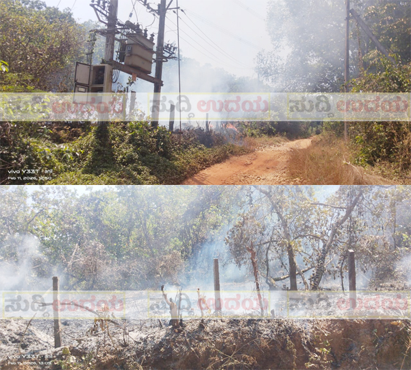 ಚಾರ್ಮಾಡಿ ಗ್ರಾಮ ಪಂಚಾಯಿತಿ ವ್ಯಾಪ್ತಿಯ ತೋಟತ್ತಾಡಿಯಲ್ಲಿ ಗೇರು ತೋಟಕ್ಕೆ ಬೆಂಕಿ ಬಿದ್ದ ಘಟನೆ ಇಂದು(ಫೆ.11) ಮಧ್ಯಾಹ್ನ ನಡೆದಿದೆ.