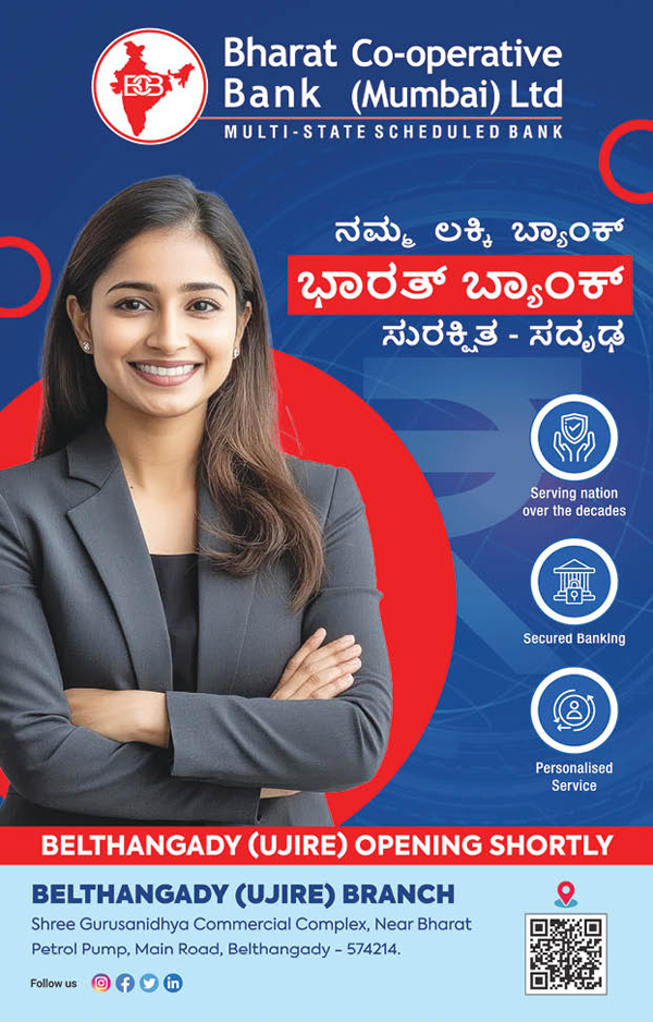 ಬೆಳ್ತಂಗಡಿ: ಭಾರತ್ ಕೋ-ಆಪರೇಟಿವ್ ಬ್ಯಾಂಕ್ (ಮುಂಬೈ) ಇದರ ಬೆಳ್ತಂಗಡಿ ಕಚೇರಿಯು ಮಾ.2 ರಂದು ಉದ್ಘಾಟನೆಗೊಳ್ಳಲು ಸಜ್ಜಾಗಿದೆ. ಇದುವರೆಗೆ ಉಜಿರೆ ಬೆಳಾಲು ತಿರುವು ರಸ್ತೆಯ ಬಳಿ ಇದ್ದ ಕಚೇರಿ ಇದೀಗ ಬೆಳ್ತಂಗಡಿ ನಗರದ ಮುಖ್ಯಭಾಗದಲ್ಲಿರುವ ಶ್ರೀ ಗುರುಸಾನಿಧ್ಯ ವಾಣಿಜ್ಯ ಮಳಿಗೆಯ ನೆಲ ಅಂತಸ್ತಿನಲ್ಲಿ ಅತ್ಯಾಧುನಿಕ ಸೌಲಭ್ಯಗಳೊಂದಿಗೆ ಗ್ರಾಹಕರ ಸೇವೆಗಾಗಿ ತೆರೆದುಕೊಳ್ಳಲಿದೆ.
