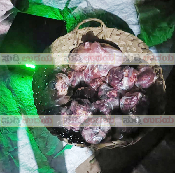 ಪೊಲೀಸರ ಜೀಪ್ ಶಬ್ದ ಕೇಳಿ ಮನೆಯೊಂದರ ಶೆಡ್ ಬಳಿಯಿಂದ ಇಬ್ಬರು ವ್ಯಕ್ತಿಗಳು ಓಡಿ ಪರಾರಿಯಾಗಿದ್ದಾರೆ ಎಂದು ವರದಿಯಾಗಿದೆ. ಬಳಿಕ ಪಂಚರ ಸಮಕ್ಷಮದಲ್ಲಿ ಶೆಡ್ ಪರಿಶೀಲನೆ ನಡೆಸಿದಾಗ, ನೆಲದ ಮೇಲೆ ಬಿಳಿ ಪ್ಲಾಸ್ಟಿಕ್ ಟರ್ಬಲ್ ಮೇಲೆ ತಲಾ 1ಕೆ.ಜಿ. ತೂಕದ 30 ಪ್ಯಾಕೆಟ್ಗಳು, ಮರದ ಬುಟ್ಟಿಯಲ್ಲಿ 20 ಪ್ಯಾಕೆಟ್ಗಳು ಹಾಗೂ ಆಟೋ ರಿಕ್ಷಾದಲ್ಲಿ ತಲಾ 2 ಕೆ.ಜಿ. ತೂಕದ ಪ್ಯಾಕೆಟ್ಗಳು ಪತ್ತೆಯಾಗಿವೆ. ಒಟ್ಟು ಮಾಂಸದ ಅಂದಾಜು ಮೌಲ್ಯ ರೂ.11,200 ಎಂದು ಅಂದಾಜಿಸಲಾಗಿದೆ. ಇದಲ್ಲದೆ ತೂಕದ ಯಂತ್ರ (ಅಂದಾಜು ರೂ.2,000), ಕೆಂಪು ಹಿಡಿಯ ಚಾಕು (ರೂ.100), ವಿವೋ ಮೊಬೈಲ್ ಫೋನ್ (ರೂ.10,000), ಕೆಎ-70-ಎ-1421 ನೋಂದಣಿ ಸಂಖ್ಯೆಯ ಕಪ್ಪು ಬಣ್ಣದ ಆಟೋ ರಿಕ್ಷಾ (ಅಂದಾಜು ರೂ. 1,50,000) ಹಾಗೂ ಮರದ ಬುಟ್ಟಿ (ರೂ.100) ವಶಪಡಿಸಿಕೊಳ್ಳಲಾಗಿದೆ.
