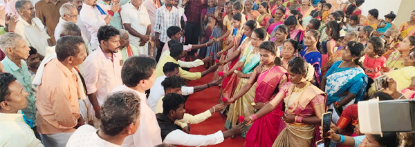 ಉದ್ಯಮಿ ಜಗನ್ನಾಥ ಶೆಟ್ಟಿ ಕೆದ್ದಳಿಕೆ ಅವರು ಮಂಗಳ ವಸ್ತ್ರ ವಿತರಿಸಿದರು.