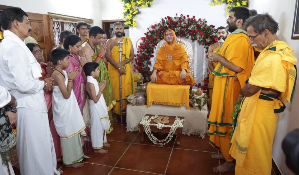 ಬೆಳ್ತಂಗಡಿ: ಪರಮಪೂಜ್ಯ ಶ್ರೀ ಮಜ್ಜಗದ್ಗುರು ಶಂಕರಾಚಾರ್ಯ ಶ್ರೀ ರಾಘವೇಶ್ವರಭಾರತೀ ಮಹಾಸ್ವಾಮಿಗಳುಶ್ರೀ ಸಂಸ್ಥಾನ -ಗೋಕರ್ಣ, ಶ್ರೀ ರಾಮಚಂದ್ರಾಪುರ ಮಠ ಇವರು ಬೆಳ್ತಂಗಡಿ ಶಾಸಕರಾದ ಹರೀಶ್ ಪೂಂಜರವರ ಮನೆಗೆ ಆಗಮಿಸಿ ಆಶೀರ್ವದಿಸಿದರು.