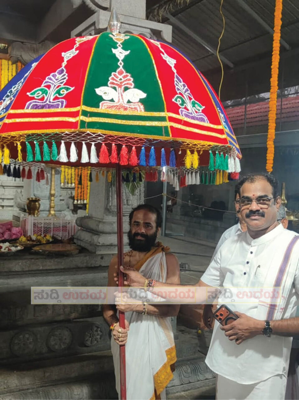 ನಾರಾವಿ: ಶ್ರೀ ಸೂರ್ಯನಾರಾಯಣ ದೇವಸ್ಥಾನ ನಾರಾವಿ ಇಲ್ಲಿನ ಬ್ರಹ್ಮಕಲಶೋತ್ಸವ ಸಂದರ್ಭದಲ್ಲಿ ಶ್ರೀ ಸೂರ್ಯನಾರಾಯಣ ದೇವರಿಗೆ ಮರೋಡಿ ಶ್ರೀ ಉಮಾಮಹೇಶ್ವರ ದೇವಸ್ಥಾನದ ಆಡಳಿತ ಮೊಕ್ತೇಸರ, ಬೆಂಗಳೂರು ಕೈಗಾರಿಕೋದ್ಯಮಿ ದೇವೆಂದ್ರ ಹೆಗ್ಡೆ ಕೊಕ್ರಾಡಿ ಮತ್ತು ದೀಪಾ ದಂಪತಿಗಳು ಬೆಳ್ಳಿಯ ಕಲಶ ಸಹಿತ ಸತ್ತಿಗೆ ಸಮರ್ಪಿಸಿದರು.