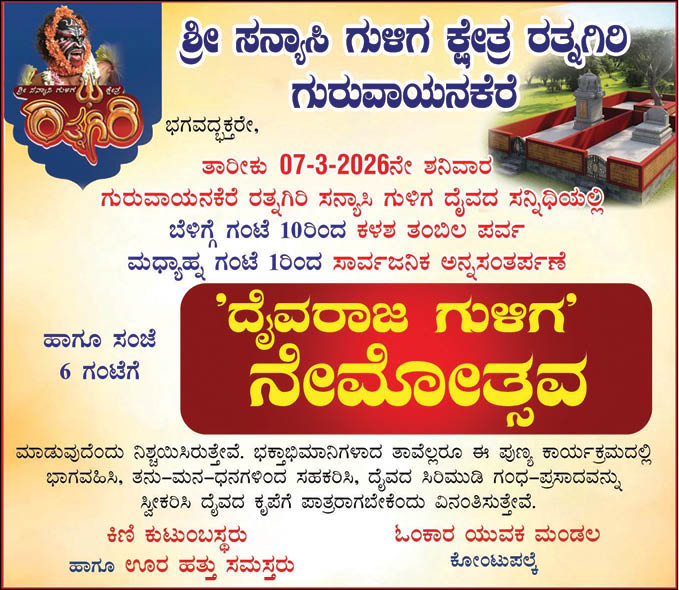 ಗುರುವಾಯನಕೆರೆ: ಇತಿಹಾಸ ಪ್ರಸಿದ್ಧ ಗುರುವಾಯನಕೆರೆ ಶ್ರೀ ಸನ್ಯಾಸಿ ಗುಳಿಗ ಕ್ಷೇತ್ರ ರತ್ನಗಿರಿಯಲ್ಲಿ ಮಾ.7ರಂದು “ದೈವರಾಜ ಗುಳಿಗ” ನೇಮೋತ್ಸವವು ಜರುಗಲಿದೆ.