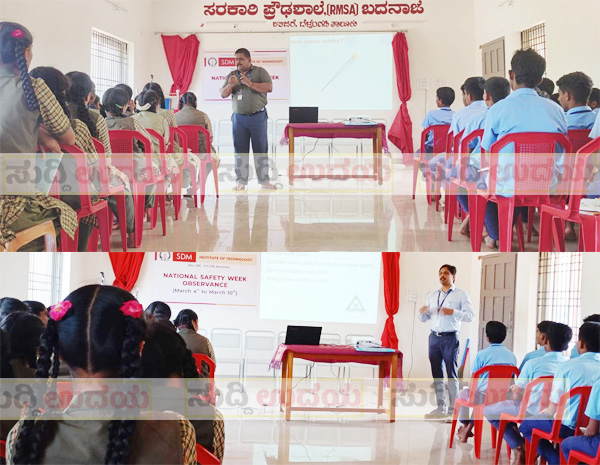 ಉಜಿರೆ: ಶ್ರೀ ಧರ್ಮಸ್ಥಳ ಮಂಜುನಾಥೇಶ್ವರ ಇಂಜಿನಿಯರಿಂಗ್ ಕಾಲೇಜಿನ ವತಿಯಿಂದ ಸರಕಾರಿ ಪ್ರೌಢಶಾಲೆ, ಬದನಾಜೆಯಲ್ಲಿ ರಾಷ್ಟೀಯ ಸುರಕ್ಷತಾ ಸಪ್ತಾಹದ ಅಂಗವಾಗಿ ಮಾ.6ರಂದು ವಿದ್ಯುತ್ ಬಳಕೆಯ ಸುರಕ್ಷತಾ ಜಾಗೃತಿ ಹಾಗೂ ರಸ್ತೆ ಸುರಕ್ಷತಾ ಸುರಕ್ಷತಾ ಜಾಗೃತಿ ಕಾರ್ಯಕ್ರಮ ನಡೆಯಿತು.