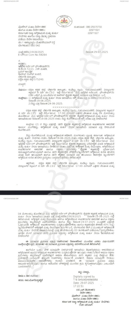 ಈ ಕಟ್ಟಡಕ್ಕೆ ಸರಕಾರದ ಎಲ್ಲಾ ಇಲಾಖೆಗಳ ಅಗತ್ಯ ಅನುಮತಿ ಲಭ್ಯವಾಗಿದೆ.ಅಗ್ನಿಶಾಮಕ ಹಾಗೂ ತುರ್ತು ಸೇವಾ ಇಲಾಖೆಯ ನಿಯಮಾನುಸಾರ ಅಗ್ನಿ ಸುರಕ್ಷತೆಯ ಎಲ್ಲಾ ಉಪಕರಣಗಳನ್ನು ಅಳವಡಿಸಿ, ಅಧಿಕಾರಿಗಳ ಪರಿವೀಕ್ಷಣೆ ನಡೆದು, ದಿನಾಂಕ 25/07/2025 ರಂದು ಸಮಾಪನ ಪತ್ರ ( ಸಂ. ಜಿಬಿಸಿ.(2)918/2025 E – Office Com No.59264)