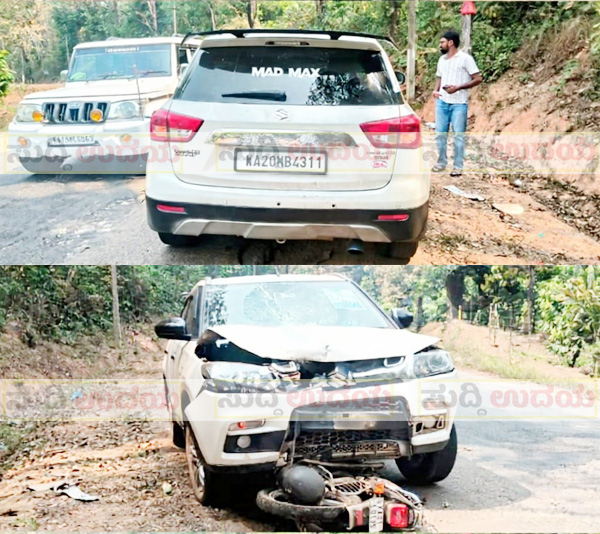 ಕೊಕ್ಕಡ ಕಡೆಯಿಂದ ಧರ್ಮಸ್ಥಳ ಕಡೆಗೆ ಬರುತ್ತಿದ್ದ ಕಾರು ಹಾಗೂ ಧರ್ಮಸ್ಥಳದಿಂದ ಶಿಬರಾಜೆ ಕಡೆಗೆ ಹೋಗುತ್ತಿದ್ದ ಬೈಕ್ ನಡುವೆ ಅಪಘಾತ ಸಂಭವಿಸಿದ ಘಟನೆ ಮಾ.7ರಂದು ಧಮ೯ಸ್ಥಳ ಸಮೀಪದ ಬೊಳಿಯಾರ್ ಎಂಬಲ್ಲಿ ನಡೆದಿದೆ.