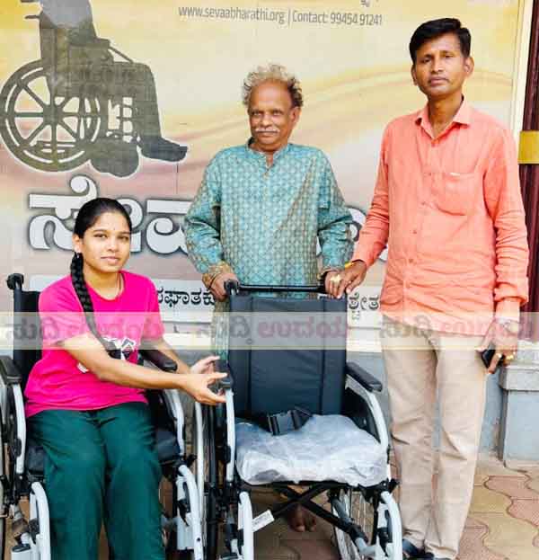 ಕನ್ಯಾಡಿ ಸೇವಾಭಾರತಿಯಿಂದ ಬೆನ್ನುಹುರಿ ಅಪಘಾತಕ್ಕೊಳಗಾದ ರಾಣೆಬೆನ್ನೂರಿನ ಚೈತ್ರಾರಿಗೆ ಗಾಲಿಕುರ್ಚಿ ವಿತರಣೆ