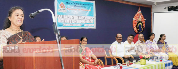 ಆಳ್ವಾಸ್ ಕಾಲೇಜಿನ (ಸ್ವಾಯತ್ತ) ಕುವೆಂಪು ಸಭಾಂಗಣದಲ್ಲಿ ಮಾ.23ರಂದು ನಡೆದ ವ್ಯವಹಾರ ಆಡಳಿತ ವಿಭಾಗದ ಶಿಕ್ಷಕ-ರಕ್ಷಕ ಸಂಘದ ವಾರ್ಷಿಕ ಸಭೆ 2025-26ನ್ನು ಉದ್ಘಾಟಿಸಿ ಮಾತನಾಡಿದರು.
