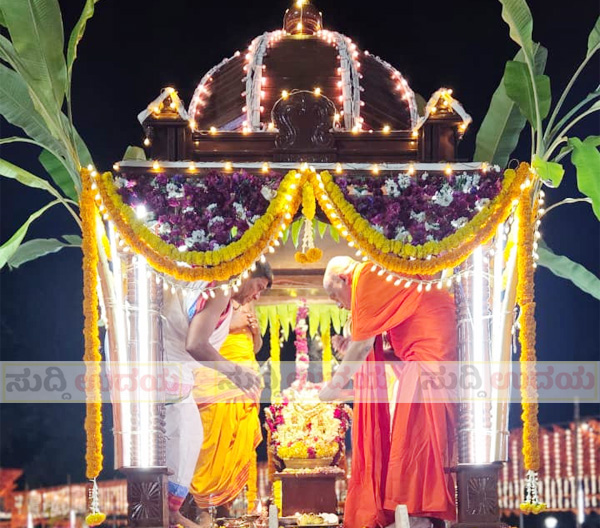 ಧರ್ಮಸ್ಥಳ : ಶ್ರೀ ರಾಮ ಕ್ಷೇತ್ರ ಮಹಾಸಂಸ್ಥಾನಮ್ ನಿತ್ಯಾನಂದ ನಗರದಲ್ಲಿ ಜಗದ್ಗುರು ಶ್ರೀ ಅತ್ಮಾನಂದ ಸರಸ್ವತಿ ಸ್ವಾಮೀಜಿಯವರ ಸ್ಮರಣೆಯೊಂದಿಗೆ ಕ್ಷೇತ್ರದ ಪೀಠಾಧೀಶ ಮಹಾಮಂಡಲೇಶ್ವರ 1008 ಸದ್ಗುರು ಶ್ರೀ ಬ್ರಹ್ಮಾನಂದ ಸರಸ್ವತಿ ಸ್ವಾಮೀಜಿಯವರ ನೇತೃತ್ವದಲ್ಲಿ ನಡೆಯುತ್ತಿರುವ 66 ನೇ ವರ್ಷದ ಶ್ರೀ ರಾಮ ನಾಮ ಸಪ್ತಾಹ ಮತ್ತು ಪ್ರತಿಷ್ಠಾ ಜಾತ್ರಾ ಮಹೋತ್ಸವದ 5 ದಿನ ಮಾ.23ರಂದು ಬೆಳಿಗ್ಗೆ ನವದುರ್ಗಾ ಹೋಮ, ನವದುರ್ಗೆಯರಿಗೆ ವಿಶೇಷ ಅಲಂಕಾರ ಪೂಜೆ ನಡೆಯಿತು.