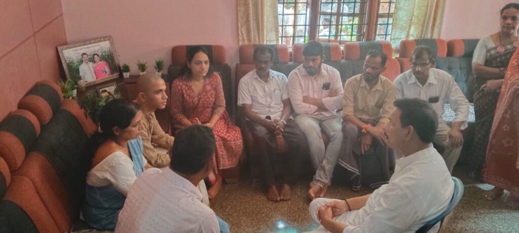 ಬೆಳ್ತಂಗಡಿ: ಇತ್ತೀಚಿಗೆ ಗುಂಡ್ಯ ಸಮೀಪದ ಬರ್ಚಿನಹಳ್ಳ ಬಳಿ ಸಂಭವಿಸಿದ ಭೀಕರ ರಸ್ತೆ ಅಪಘಾತದಲ್ಲಿ ಮೃತಪಟ್ಟ ಚಂದ್ರಶೇಖರ್ ಗೌಡ ಧರ್ಮದಕಳ ಅವರ ನಿವಾಸಕ್ಕೆ ಮಾಜಿ ಸಂಸದ ನಳಿನ್ ಕುಮಾರ್ ಕಟೀಲ್ ಭೇಟಿ ನೀಡಿ ಕುಟುಂಬದವರಿಗೆ ಸಾಂತ್ವನ ಹೇಳಿದರು.