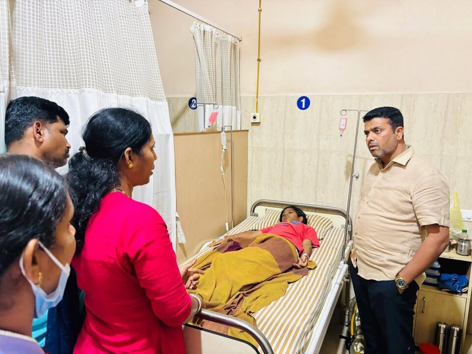 ಬೆಳ್ತಂಗಡಿ: ಗೇರುಕಟ್ಟೆಯಿಂದ ಬೆಳ್ತಂಗಡಿಯ ಶಾಲೆಗೆಂದು ಕೆಎಸ್ಆರ್ ಟಿ.ಸಿ ಬಸ್ ನಲ್ಲಿ ಹೋಗುತ್ತಿರುವ ವೇಳೆ ರೇಷ್ಮೆ ಕ್ರಾಸ್ ರೋಡ್ ಬಳಿಯ ಪೆಟ್ರೋಲ್ ಪಂಪ್ ಬಳಿ ತಿರುವಿನಲ್ಲಿ ಒಮ್ಮಿಂದೊಮ್ಮೆಲೆ ಬಸ್ ನ ಬಾಗಿಲು ತೆರೆದ ಪರಿಣಾಮ ನ್ಯಾಯತರ್ಪು ಗ್ರಾಮದ ಕಲಾಯಿತೊಟ್ಟು ನಾಗರಾಜ ಗೌಡ ಮತ್ತು ರೂಪ ದಂಪತಿಗಳ ಮಕ್ಕಳಾದ ಪಿಯುಸಿ ಹಾಗೂ ಹತ್ತನೇ ತರಗತಿಯ ಅಕ್ಕ ತಂಗಿ ವಿದ್ಯಾರ್ಥಿನಿಯರಿಬ್ಬರು ಬಸ್ ನಿಂದ ಹೊರಗೆಸೆಯಲ್ಪಟ್ಟು ಗಾಯಗೊಂಡು ಆಸ್ಪತ್ರೆಯಲ್ಲಿ ಚಿಕಿತ್ಸೆ ಪಡೆಯುತ್ತಿದ್ದು,ಆಸ್ಪತ್ರೆಗೆ ಬೆಳ್ತಂಗಡಿ ಶಾಸಕ ಹರೀಶ್ ಪೂಂಜ ಭೇಟಿ ನೀಡಿ ಅವರ ಆರೋಗ್ಯ ವಿಚಾರಿಸಿದರಲ್ಲದೆ ಮನೆಯವರಿಗೆ ಧೈರ್ಯ ತುಂಬಿದರು.