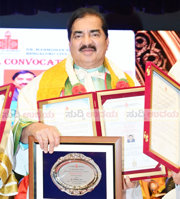 ಮೂಡುಬಿದಿರೆ: ಆಳ್ವಾಸ್ ಶಿಕ್ಷಣ ಪ್ರತಿಷ್ಠಾನದ ಅಧ್ಯಕ್ಷ ಡಾ. ಎಂ. ಮೋಹನ್ ಆಳ್ವರಿಗೆ  ಬೆಂಗಳೂರಿನ ಡಾ ಮನಮೋಹನ್‌ಸಿಂಗ್ ನಗರ ವಿಶ್ವವಿದ್ಯಾಲಯದಿಂದ ಗೌರವ ಡಾಕ್ಟರೇಟ್ ಪ್ರದಾನ ಮಾಡಲಾಯಿತು.