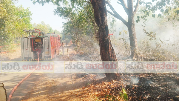 ಬೆಂಕಿ ಬಿದ್ದ ಪರಿಣಾಮ ರಸ್ತೆ ಬದಿವರೆಗೂ ಬೆಂಕಿ ವ್ಯಾಪಿಸಿತ್ತು. ಅಲ್ಲದೇ ಹೆಚ್ಚಿನ ಜಾಗ ಬೆಂಕಿಗಾಹುತಿಯಾಗಿದೆ ಎಂದು ವರದಿಯಾಗಿದೆ. ಅಗ್ನಿಶಾಮಕ ದಳದವರು ಬೆಂಕಿ ನಂದಿಸುವ ಕಾರ್ಯ ನಡೆಸುತ್ತಿದ್ದಾರೆ.