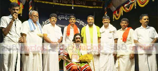 ಗೌರವಾರ್ಪಣೆ: ಕಾರ್ಯಕ್ರಮದಲ್ಲಿ ಗೆಜ್ಜೆಗಿರಿ ಮೇಳದ ಹಿರಿಯ ಯಕ್ಷಗಾನ ಕಲಾವಿದ ಕೊಳ್ತಿಗೆ ನಾರಾಯಣಗೌಡ, ಯಕ್ಷ ಸೇವೆಯಲ್ಲಿ 25 ಸಂವತ್ಸರವನ್ನು ಪೂರೈಸಿದ ಶ್ರೀ ತೆಲಿಕೆದ ಬೊಳ್ಳಿ ದಿನೇಶ್ ರೈ ಕಡಬ,ಮುಖ್ಯ ಅತಿಥಿ ಕಲಾವಿದರಾಗಿ ಭಾಗವಹಿಸಿದ್ದ ಅಶ್ವಥ್ ಆಚಾರ್ಯ ಕೈಕಂಬ ಇವರನ್ನು ಗೌರವಿಸಲಾಯಿತು.