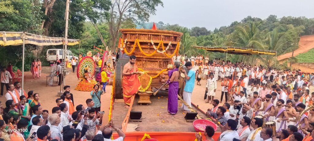 ಪೂರ್ಣಕುಂಭಸ್ವಾಗತ, ವೀರಗಾಸೆ, ಕೇರಳ ತೈಯಮ್, ಡೊಳ್ಳು ಕುಣಿತ, ವಾಯಲಿನ್, ಚೆಂಡೆ, ಭಜನ ತಂಡ, ಕೀಳು ಕುದರೆ, ವಾದ್ಯಗೋಷ್ಠಿಯಲ್ಲಿ ರಥವನ್ನು ದೇವಸ್ಥಾನಕ್ಕೆ ವೈಭವಪೂರ್ಣವಾಗಿ ತರಲಾಯಿತು. ನೂರಾರು ಸಂಖ್ಯೆಯಲ್ಲಿ ಭಕ್ತರು ರಥದ ಜತೆಯಲ್ಲಿ ಹೆಜ್ಜೆ ಹಾಕಿದರು. ಅಲ್ಲಲ್ಲಿ ಬ್ರಹ್ಮರಥಕ್ಕೆ ಪುರ್ಷ್ಪಾಚನೆ ನಡೆಸಲಾಯಿತು.