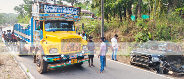 ಲಾರಿ-ಕಾರು ಮಧ್ಯೆ ಅಪಘಾತ: ಕಾರು ನಜ್ಜುಗುಜ್ಜು