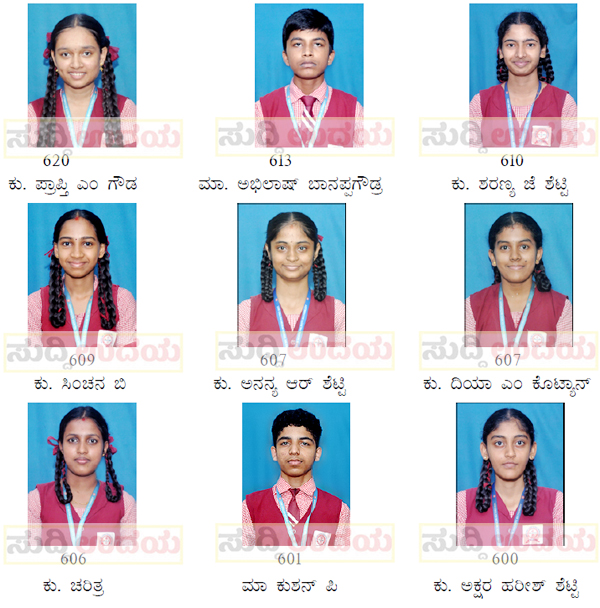 ಸಿಂಚನ ಬಿ 609, ಅನನ್ಯ ಆರ್ ಶೆಟ್ಟಿ 607, ದಿಯಾ ಎಂ ಕೋಟ್ಯಾನ್ 607, ಚರಿತ್ರ 606, ಕುಶನ್ ಪಿ 601, ಅಕ್ಷರ ಹರೀಶ್ ಶೆಟ್ಟಿ 600 ಅಂಕಗಳನ್ನು ಪಡೆದಿರುತ್ತಾರೆ.