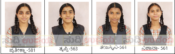 ಪ್ರತೀಕ್ಷ 581ಅಂಕಗಳೊಂದಿಗೆ ಶಾಲೆಗೆ ಪ್ರಥಮ ಸ್ಥಾನ, ತೃಪ್ತಿ 563 ಅಂಗಳೊಂದಿಗೆ ದ್ವಿತೀಯ ಸ್ಥಾನ, ತೇಜಸ್ವಿನಿ ಮತ್ತು ಫಾತಿಮತ್ ನಿಶಾನ 561 ಅಂಕಗಳೊಂದಿಗೆ ತೃತೀಯ ಸ್ಥಾನ ಪಡೆದಿದ್ದಾರೆ.