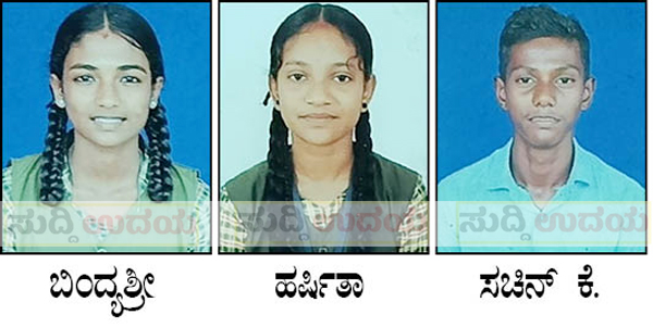 ಬಿಂದ್ಯಶ್ರೀ 604(96.64) ಅಂಕ ಪಡೆದು ಪ್ರಥಮ ಸ್ಥಾನವನ್ನು, ಹರ್ಷಿತಾ 594( 95.04) ಅಂಕ ಪಡೆದು ದ್ವಿತೀಯ ಸ್ಥಾನವನ್ನು, ಸಚಿನ್ ಕೆ. 581(92.96) ಅಂಕ ಪಡೆದು ತೃತೀಯ ಸ್ಥಾನವನ್ನು ಪಡೆದಿದ್ದಾರೆ.