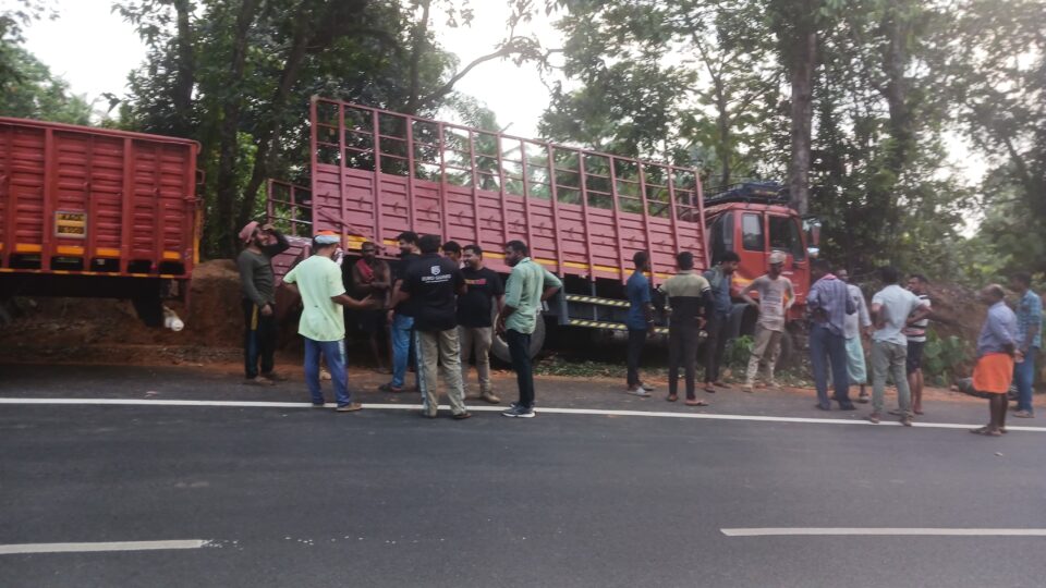 ಬೆಳ್ತಂಗಡಿ: ಗುರುವಾಯನಕೆರೆ-ಅಳದಂಗಡಿ- ಕಾರ್ಕಳ ರಾಜ್ಯ ಹೆದ್ದಾರಿಯ ಸುಲ್ಕೇರಿ ಸಮೀಪ ಕಬ್ಬಿಣದ ಸರಳುಗಳನ್ನು ಕಾರ್ಕಳ ಕಡೆ ಸಾಗಾಟ ಮಾಡುತ್ತಿದ್ದ ಲಾರಿಯೊಂದು ಚಾಲಕನ ನಿಯಂತ್ರಣ ತಪ್ಪಿ ರಸ್ತೆ ಬದಿಯ ದರೆಗೆ ಗುದ್ದಿದ ಘಟನೆ ಶನಿವಾರ ನಡೆದಿದೆ. ಲಾರಿಗೆ ಹಾನಿಯಾಗಿದ್ದು, ಚಾಲಕ ಪ್ರಾಣಾಪಾಯದಿಂದ ಪಾರಾಗಿದ್ದಾರೆ ಎಂದು ತಿಳಿದುಬಂದಿದೆ.